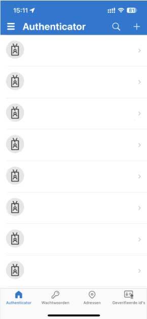 6. In de Authenticator app druk je in de rechterbovenhoek op het PLUS icoon