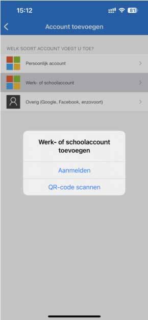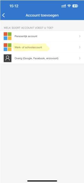 7. Kies vervolgens voor Werk of Schoolaccount
